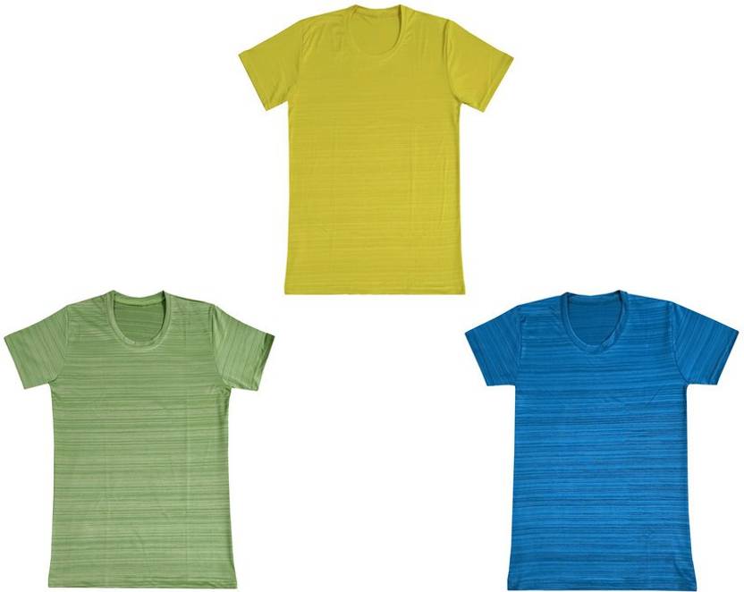 IndiWeaves Boys Solid Polyester Regular T Shirt (Multicolor, Pack of 3)