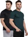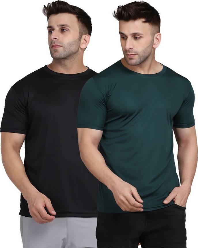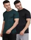 INDIZO Solid Men Round Neck Green, Black T-Shirt
