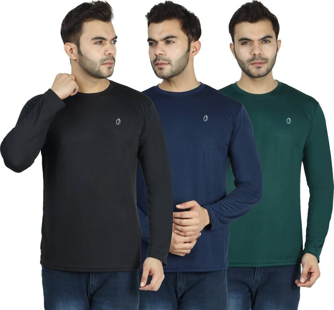 INDIZO Pack of 3 Men Solid Round Neck Polyester Multicolor T-Shirt