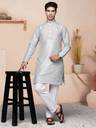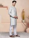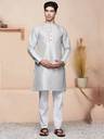 Men Solid Silk Blend Straight Kurta (Grey)
