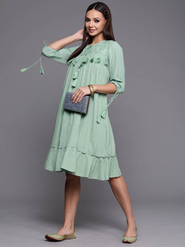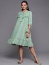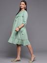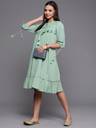 Indo Era Women Embroidered Pure Cotton Ethnic Dress (Green)