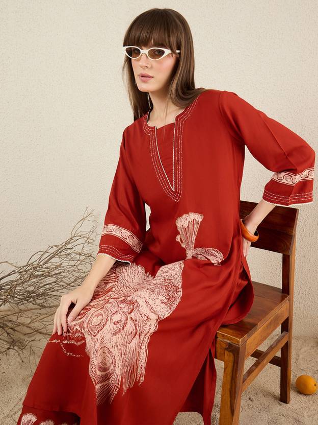 The Viscose Rayon Fabric  in this attractive Rust Color ready to wear Kurta Set will make sure that the fitting of this beautiful readymade Kurta Set looks elegant on you. Crafted from Viscose Rayon Fabric , it is light in weight and will be soft against your skin. Its unique design and beautiful colour will fetch a lot of second glances as you club it with contrast colored pumps and flashy accessory. Our Products are Made and stitched using high grade fabrics and yarns under the strict surveillance of our well-versed Executives. It is capable of making you look gorgeous. Wear it and put your step in the world of fashion. It looks stunning every time you match it with accessories.