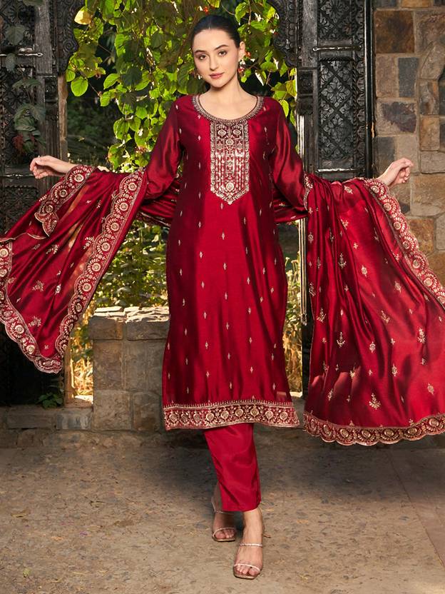 The Silk Blend Fabric in this attractive Maroon Color ready to wear Kurta Set will make sure that the fitting of this beautiful readymade Kurta Set looks elegant on you. Crafted from Silk Blend Fabric , it is light in weight and will be soft against your skin. Its unique design and beautiful colour will fetch a lot of second glances as you club it with contrast colored pumps and flashy accessory. Our Products are Made and stitched using high grade fabrics and yarns under the strict surveillance of our well-versed Executives. It is capable of making you look gorgeous. Wear it and put your step in the world of fashion. It looks stunning every time you match it with accessories.