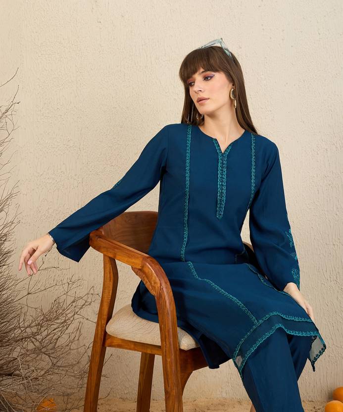 The Silk Blend Fabric in this attractive Teal Color ready to wear Kurta Set will make sure that the fitting of this beautiful readymade Kurta Set looks elegant on you. Crafted from Silk Blend Fabric , it is light in weight and will be soft against your skin. Its unique design and beautiful colour will fetch a lot of second glances as you club it with contrast colored pumps and flashy accessory. Our Products are Made and stitched using high grade fabrics and yarns under the strict surveillance of our well-versed Executives. It is capable of making you look gorgeous. Wear it and put your step in the world of fashion. It looks stunning every time you match it with accessories.