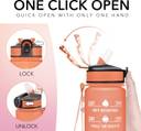 Motivational Time Markers: Stay on track with your hydration goals using inspirational quotes and time indicators on the 32oz water bottle., Spill-Proof Design: Enjoy spill-proof sipping on the go with the convenient straw and secure flip-top lid featuring a dust-proof lock., Durable Construction: Made from resilient, BPA-free plastic, this water bottle is designed to withstand impacts and temperature extremes (-40 to 212°F)., Portable: Lightweight and equipped with a carrying strap, this bottle is perfect for all your indoor and outdoor activities., Enhanced User Experience: Upgraded design and color coordination make this water bottle an ideal gift choice, backed by a 100% satisfaction guarantee.