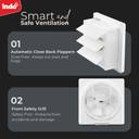 Boasting automatic close-back louvers, this fan helps keep dust and insects out, maintaining a clean, hygienic space. The addition of a front safety grill provides extra protection, reducing the risk of accidents while delivering a sleek, modern aesthetic that complements any room.
