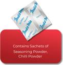 Ingredients | - Noodles: Refined wheat flour (Maida), Edible vegetable oil (Refined palm oil (Contains any! kidant INS 319)), Salt, Acidity regulators (INS 4521, INS 501i, INS 500i). Thickener (INS 412), Colour (INS 101i)., Seasoning Powder: Salt, Flavour enhancers (INS 621, INS 631, INS 627), Artificial vegetable flavour, Sugar, White pepper, Garlic, Onion, Turmeric. Dried Chili Powder