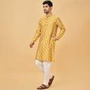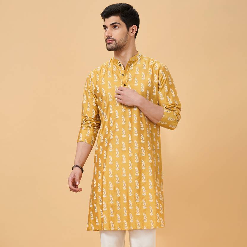 Indus Route by Pantaloons Men Printed Ethnic Dress Kurta (Yellow)