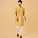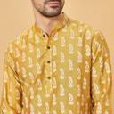 Men Printed Viscose Rayon Ethnic Dress (Yellow)