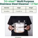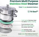 The Indus Valley 2-Tier Steamer with Glass Lid| 3-Layer sandwich base Modak/Veggies/ Momo Maker| Stainless Steel Steamer (3 L)