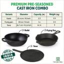 The Indus Valley Cast Iron Tawa 10.2Inch, FryPan 9Inch, Kadai 10Inch & Iron Tadka Pan Combo Induction Bottom Cookware Set (Cast Iron, 1 - Piece)