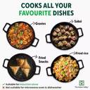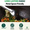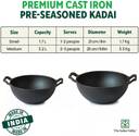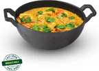 The Indus Valley Pre-Seasoned Cast Iron Deep Kadai with Curved Handles - 8 inch Kadhai 21 cm diameter 1.7 L capacity (Cast Iron, Induction Bottom)