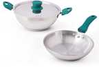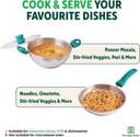 EASY TO USE DESIGN: The kadai and fry pan have beautiful, cool-touch green bakelite handles that give you a comfortable grip. The stainless steel kadai comes with a stainless steel lid that has a green heat-resistant knob. The air vent holes on the lid are for releasing steam and extra moisture - giving you excellent cooking results.