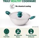 100% TOXIN-FREE: The Indus Valley’s Tri-steel Premium Stainless Steel Combo - Fry Pan + Kadai - with Capsule Bottom is 100% food-safe; with no chemical coating.