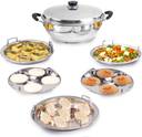 The Indus Valley Stainless Steel Idli/Dhokla/Momo Maker/Multi Pot/Steaming Set|5 Plates - 9 inch Pot 23 cm diameter 3 L capacity with Lid (Stainless Steel, Induction Bottom)