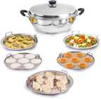 The Indus Valley Stainless steel Idli/Dhokla/Momo Maker/Multi Pot/Veg Steaming Set|5 Plates Multi Pot 29 cm diameter 4.2 L capacity with Lid (Stainless Steel, Induction Bottom)