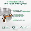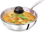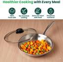 The Indus Valley Triply Stainless Steel Fry Pan with Glass Lid and Long Handle - 9.4 inch Fry Pan 24 cm diameter with Lid 1.7 L capacity (Triply, Induction Bottom)
