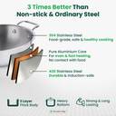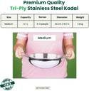 The Indus Valley Triply Stainless Steel Kadai with Twin handle - 9.2 inch Kadhai 23.4 cm diameter 2.7 L capacity (Stainless Steel, Induction Bottom)