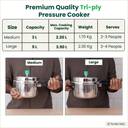 The Indus Valley Triply Stainless Steel Pressure Cooker Combo + Free Wooden Chopping Board 3 L, 5 L Outer Lid Induction Bottom Pressure Cooker (Triply)