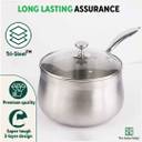 The Indus Valley Triply Stainless Steel Sauce/Milk Pan with Glass Lid - 8 inch Sauce Pan 20.3 cm diameter with Lid 3.5 L capacity (Triply, Induction Bottom)