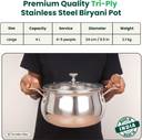 • Triply Stainless Steel Stock Pot with Glass Lid and Twin Handle- 9.5 inch