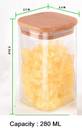 280 ML Borosilicate Clear glass allows the contents of the jar easily see without removing the lid. You can open or cover the lid in a short time. Storing These glass food storage jars Organizer rack and Container set will make your home tidier.Perfect for storing and preserving a variety of ingredients including preserves, jams, chutneys, rice, sugar, flour, tea, coffee, spices, biscuits, etc. The transparent food storage jars are made of high-quality borosilicate glass, which is lighter and more heat resistant than ordinary glass jars. The kitchen storage containers use bamboo lids and all sealed with a rubber ring for a better airtight space to prevent the food from getting wet and insects gain longer freshness time and longer storage time.Crafted from glass with a bamboo lid, this jar is unique, durable, clear & scratch thermal shock resistant & stylish Too, Use this jar with dry goods like beans, rice and pasta, keeping them fresh and looking presentable in your cabinets. The glass jars are conveniently dishwasher safe for easy clean up.Perfect for tea, pasta, dry Foods, spices, coffee, candy , powder, herbs, sugar and more. Wooden lid with baby & medical safe rubber ring: close tightly, keeping food fresh and dry. Thickened borosilicate glass: BPA & Lead free. More durable than other glass.