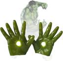 Hulk Hand Gloves - Rubberised PVC Flexible Action Figure Cosplay Hulk Gloves with Light Feature Light Model Toys. Gloves are equipped with LED lights. Made of High quality PVC soft plastic which lets you twist & turn the fingers like real hulk fist hand. Hulk grip Gloves Cos Props is Highly pigmented paint avoids chipping off over time.