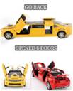 Scale Metal DieCast Long Streched Limo Car with 6 Openable Doors, Music, Front Back Lights & Pull Back Action , Pack of 2