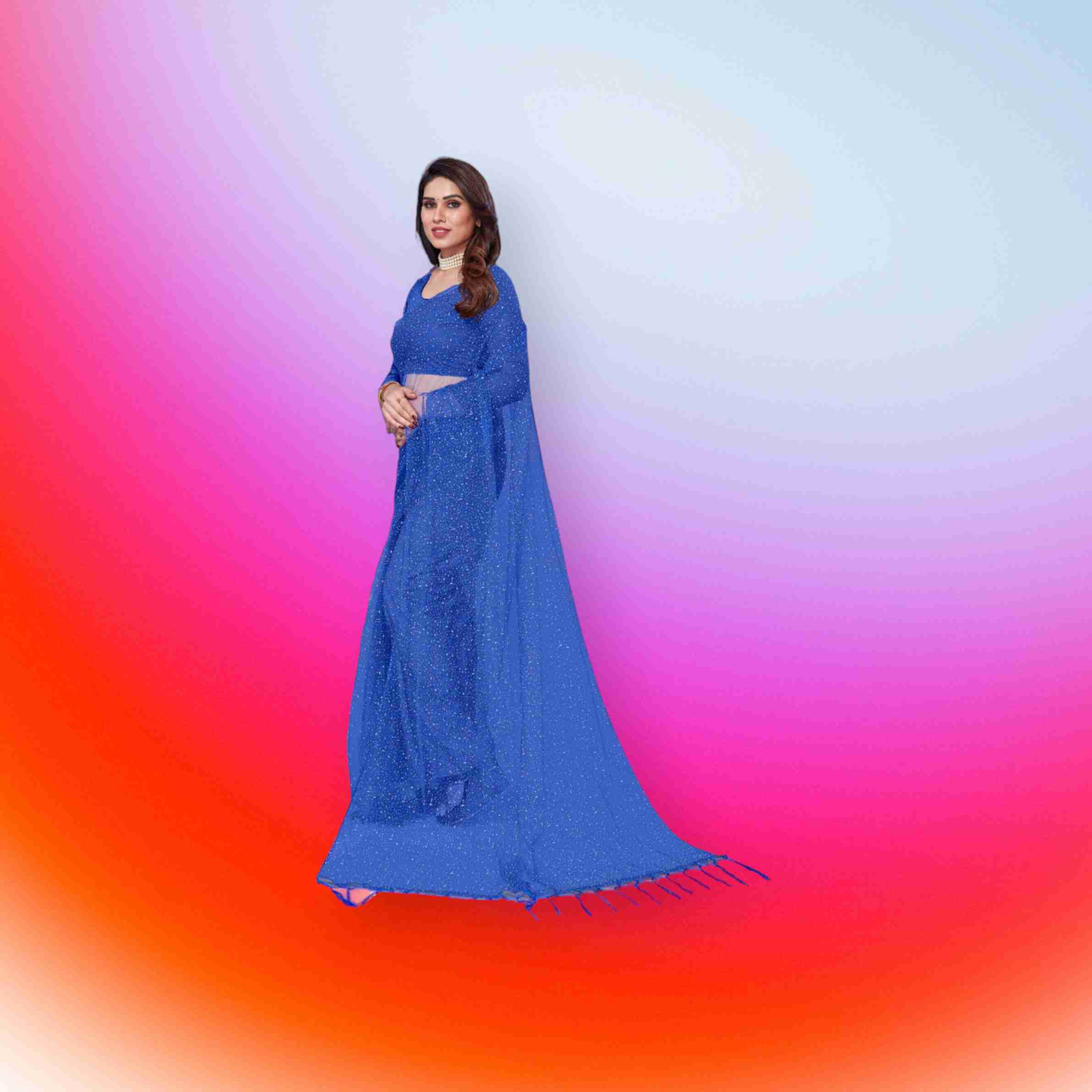 Solid/Plain Daily Wear Georgette Saree (Blue)