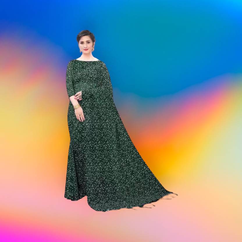 InfiniteFab Solid/Plain Daily Wear Georgette Saree (Green)