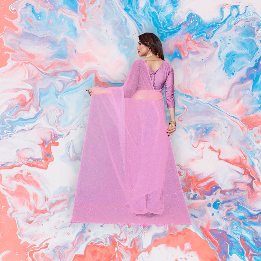 InfiniteFab Solid/Plain Daily Wear Georgette Saree (Pink)
