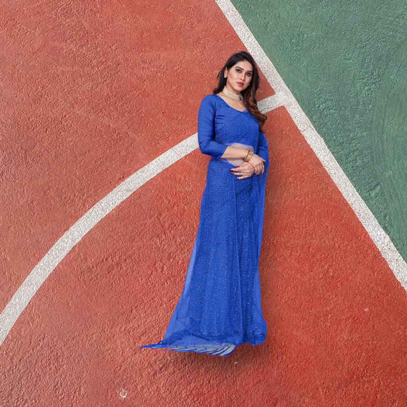 Solid/Plain Daily Wear Georgette Saree (Blue)