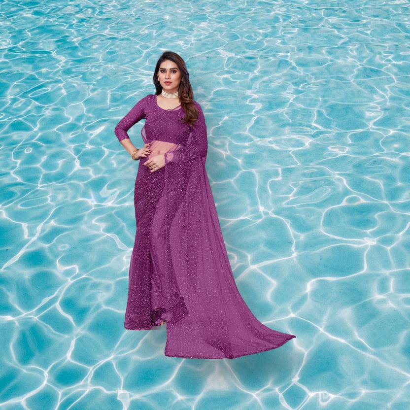 InfiniteFab Solid/Plain Daily Wear Georgette Saree (Blue)