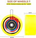 Atom Poison Wheels: Polyurethane (PU) Construction: Atom Poison Wheels are expertly crafted using high-quality polyurethane (PU) material, providing exceptional durability and resilience, ensuring they can withstand the rigors of intense skating sessions. Optimal Diameter: With a diameter of 65mm, these wheels strike the perfect balance between stability and agility, making them ideal for various skating styles and terrains. 78A Hardness: The 78A hardness rating ensures a versatile performance, delivering a smooth glide over a range of surfaces while maintaining ample grip for confident control.