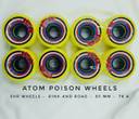 Atom Poison Wheels provide awesome grip without that ‘sluggish marshmellow’ feeling which allows for more roll. Featuring Atom’s Patented Urethane formula. It is a soft wheel specifically designed for swiftness in your strides. All purpose high speed quad skating wheel set that will cater all your racing and practice needs. Suitable on Rink, floor, concrete, road, wooden, tiles and other similar surfaces giving a smooth grip, flow and effective bounce.