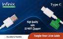 Infinix USB Type C Cable 3 A 1 m 33 Watt Model No.C033-C (Compatible with All Infinix C type Phone & for Note 11 / Note 12 /Note 12 Pro /Hot 30 5G /, White, One Cable)