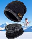 Infispace Winter Woolen Unisex Fur Fleece Lined Stylish Beanie Knitted Cap with Neck Warmer for Men and Women