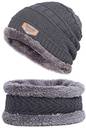Winter Woolen Unisex Fur Fleece Lined Stylish Beanie Knitted Cap with Neck Warmer for Men and Women