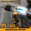 [ Brushless Motor ]---This impact drill adopts brushless technology, which is stronger, more durable, less noisy and spark-free to ensure safety.