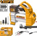 Power supply:DC12V - Rated current:10A Max.pressure:140PSI(10Bar) - Max.air flow:35L/min With 1PCS LED light & 3M cord with cigarette lighter With 1Pcs battery clips With 4pcs nozzle adapters