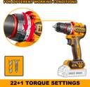 INGCO Compact Brushless Cordless Drill 55Nm, 13mm Metal Chuck, 2-Speed, with 1Pcs Battery, 1Pcs Charger, 47Pcs Accessories, CDLI205582 Cordless Drill (13 mm Chuck Size)