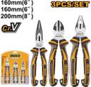 8" Combination pliers, 6" Long nose pliers, 6" Diagonal cutting pliers