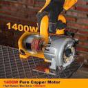 ?High Performance?: Our Marble cutter is designed with 34mm Max.cutting capacity.1400W pure copper motor, which provides 13000rpm No-load speed, delivers the cutting power to cut through granite, porcelain, concrete and other stone materials.