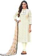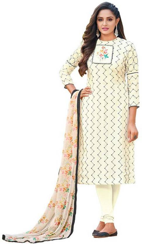 Add richer looks to your personality in this dress material. This chanderi suit is beautifully adorned with printed work comes along with cotton bottom and Cotton Inner and chiffon dupatta which makes it appear more adorning. Women can buy this suit to wear for their upcoming festivals, homely functions, parties, kitties, weekend get together. Get this unstitched suit stitched according to your fit and comfort. Team it with stylish accessories to make your looks more beautiful. Note:- The actual product may differ slightly in color and design from the one illustrated in the images when compared with computer or mobile screen.