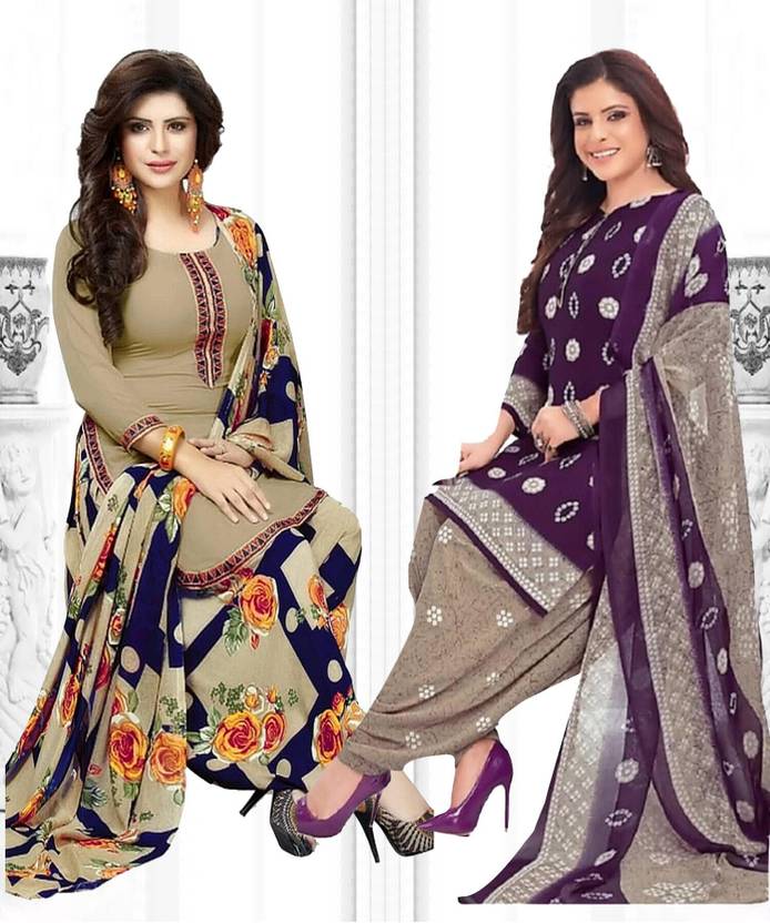 Womens Crepe Printed Unstiched Dress Material. Add style to your Daily Wear Collection with this Printed Dress material Salwar suit. 2 Unstitched Salwar, 2 Unstitched Top, 2 Dupatta.Top & Bottom Fabric : American Crepe, Dupatta Fabric : Martina You can use it for daily wear purpose it will give you immense comfort and fresh styling look.