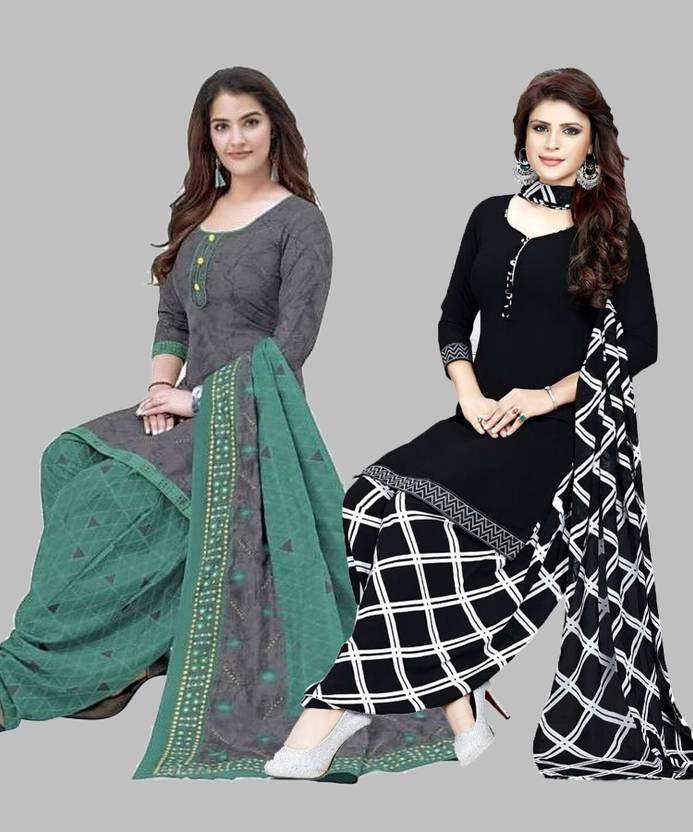 Womens Crepe Printed Unstiched Dress Material. Add style to your Daily Wear Collection with this Printed Dress material Salwar suit. 2 Unstitched Salwar, 2 Unstitched Top, 2 Dupatta.Top & Bottom Fabric : American Crepe, Dupatta Fabric : Martina You can use it for daily wear purpose it will give you immense comfort and fresh styling look.