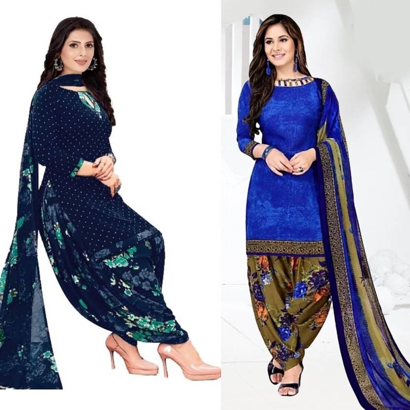 Unstitched Crepe Salwar Suit Material Printed