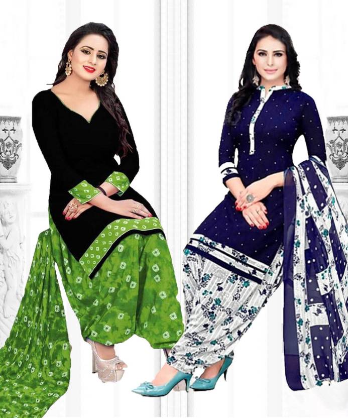 Womens Crepe Printed Unstiched Dress Material. Add style to your Daily Wear Collection with this Printed Dress material Salwar suit. 2 Unstitched Salwar, 2 Unstitched Top, 2 Dupatta.Top & Bottom Fabric : American Crepe, Dupatta Fabric : Martina You can use it for daily wear purpose it will give you immense comfort and fresh styling look.