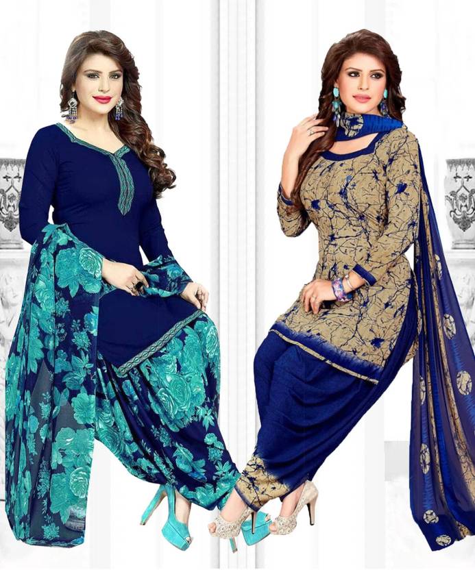 Womens Crepe Printed Unstiched Dress Material. Add style to your Daily Wear Collection with this Printed Dress material Salwar suit. 2 Unstitched Salwar, 2 Unstitched Top, 2 Dupatta.Top & Bottom Fabric : American Crepe, Dupatta Fabric : Martina You can use it for daily wear purpose it will give you immense comfort and fresh styling look.