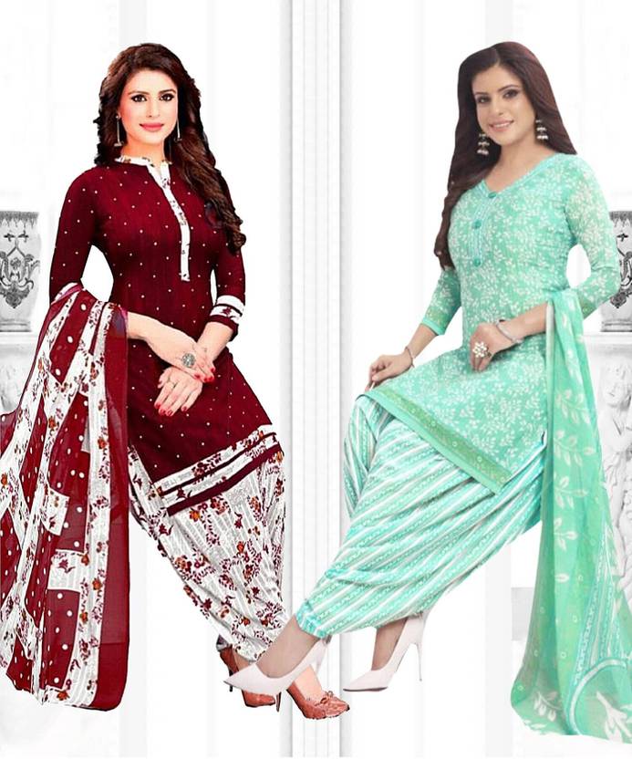 Womens Crepe Printed Unstiched Dress Material. Add style to your Daily Wear Collection with this Printed Dress material Salwar suit. 2 Unstitched Salwar, 2 Unstitched Top, 2 Dupatta.Top & Bottom Fabric : American Crepe, Dupatta Fabric : Martina You can use it for daily wear purpose it will give you immense comfort and fresh styling look.